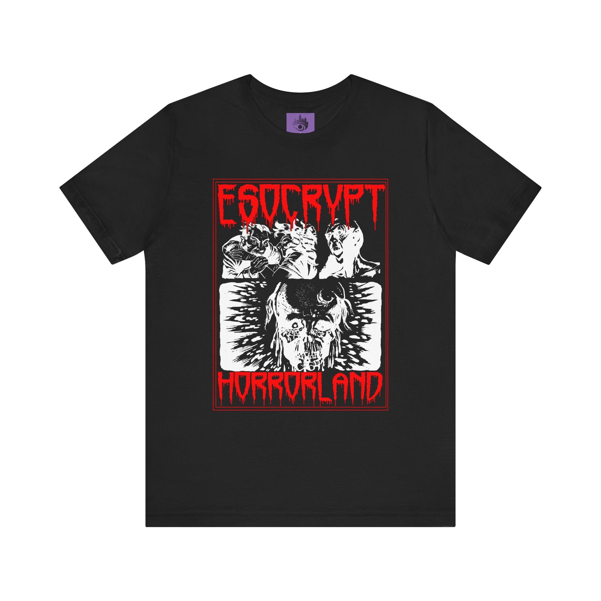 This Halloween season, enjoy the first seasonal merchandise drop from Esocrypt: twin lightweight t-shirts featuring art from Lee Bentley jr. montaged by River V.C.